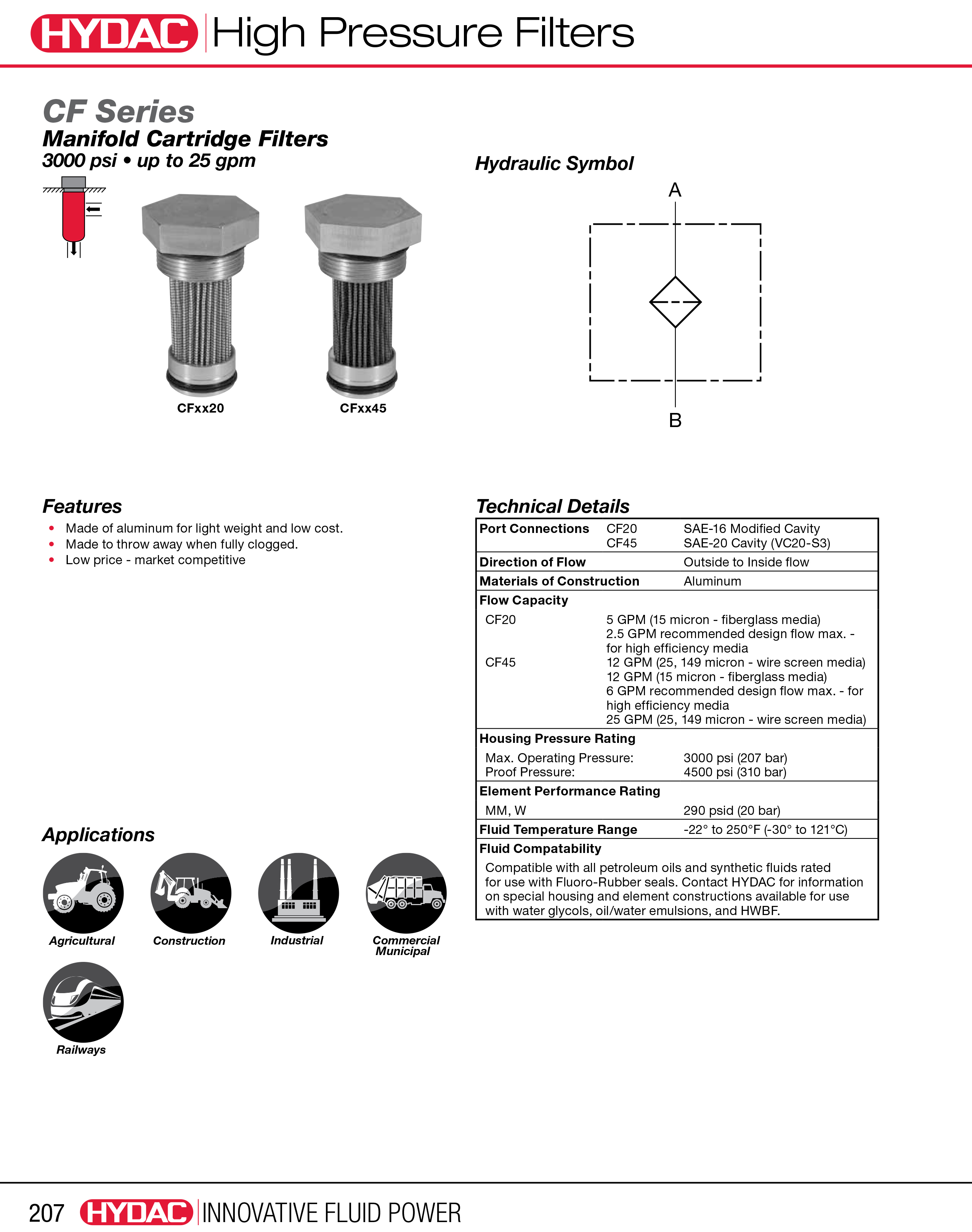 HYDAC/贺德克高压过滤器CF BH/HC 20 G 10 W 1.0/12